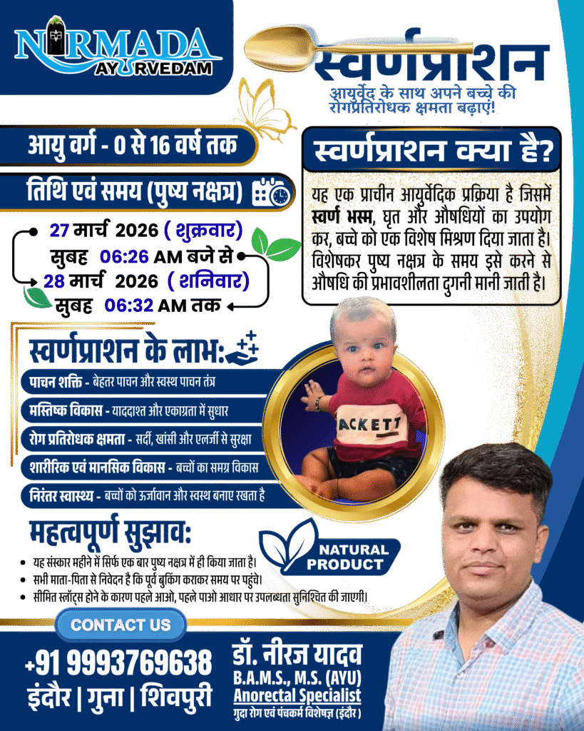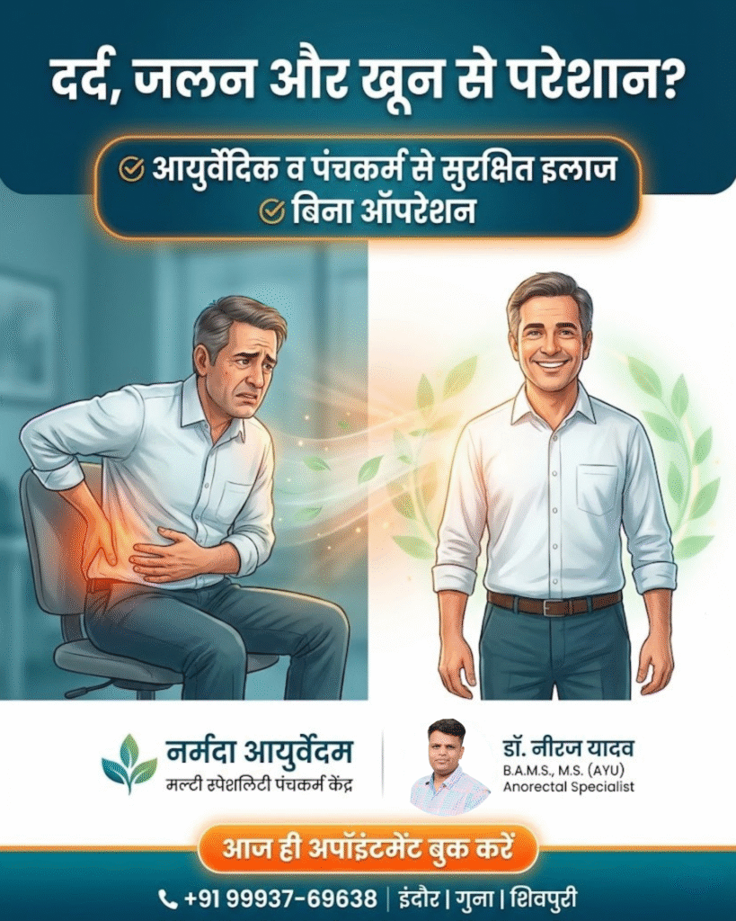 “Ayurvedic treatment for Piles, Fissure, Fistula and Anorectal disorders. Dr. Neeraj Yadav specializes in traditional Ayurvedic therapies, Panchakarma, and natural healing methods to provide safe and effective treatment.”